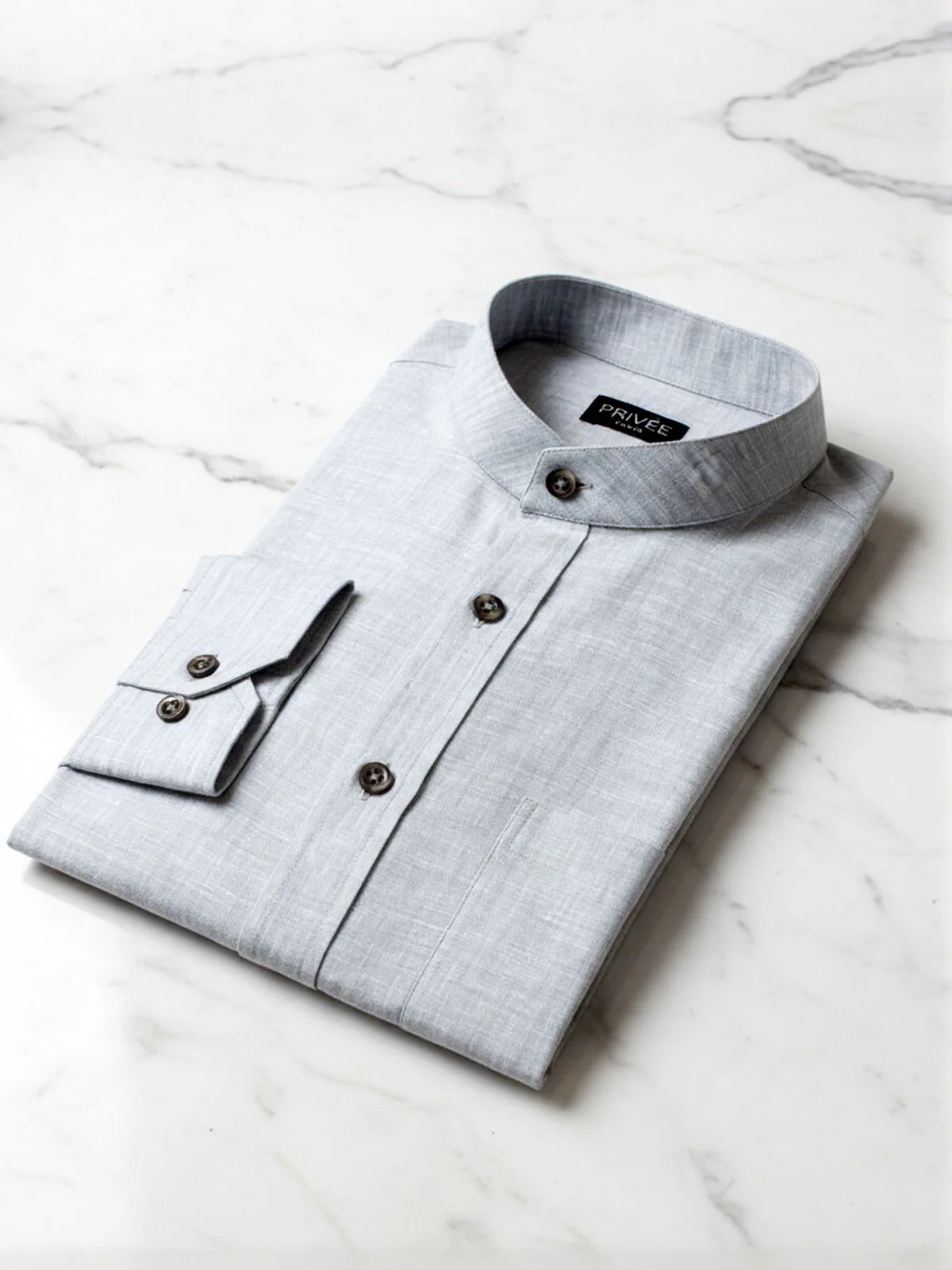 Linen shirts are a staple in any summer wardrobe. They're lightweight, breathable, and perfect for staying cool in the heat. The grey linen shirt with a band collar is a stylish and versatile option that can be dressed up or down for any occasion. The Grey color also hides sweat stains.