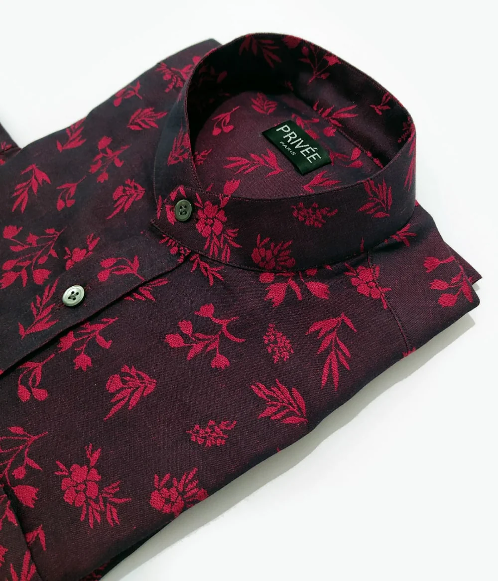 Heritage Collection - Cherry Red Wedding Shirt (Jacquard), Luxury Shirt for special occasions. A luxury shirt for a man with his better half attending wedding events, functions, or receptions together. Soft in touch, with an intricate weave, a must-have marriage shirt for men.